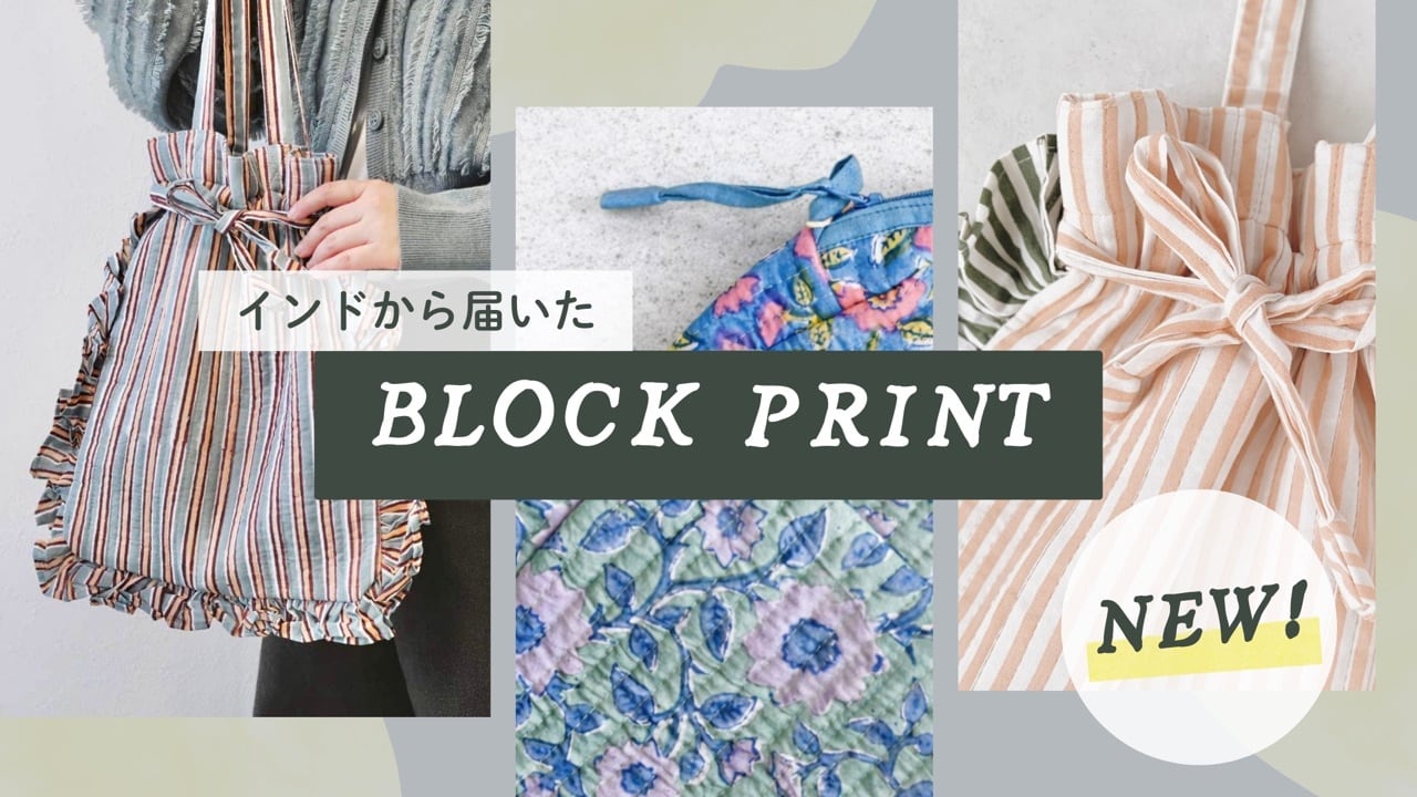 ストライプ生地のフリルトートバッグ|ストライプ おしゃれ ブロックプリントキルティングトート 雑貨屋
