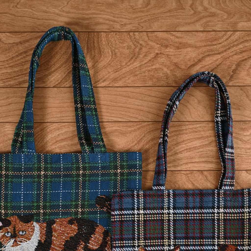 ねこのトートバッグ Maron(チェック柄×ネイビー)|松尾ミユキ 猫 レトロ 雑貨屋