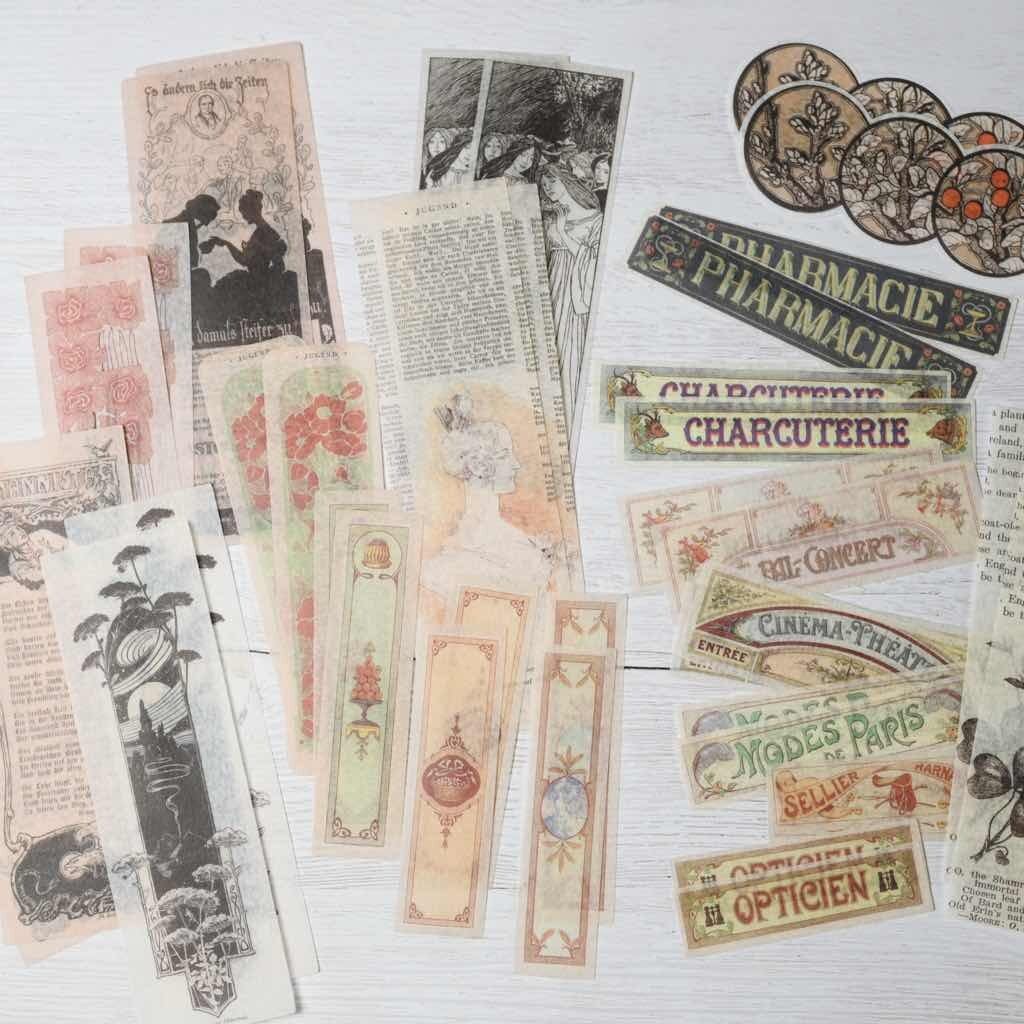 ヴィンテージシールコレクション 短冊型|素材 40sheet レトロイラスト 手帳素材 紙もの 雑貨