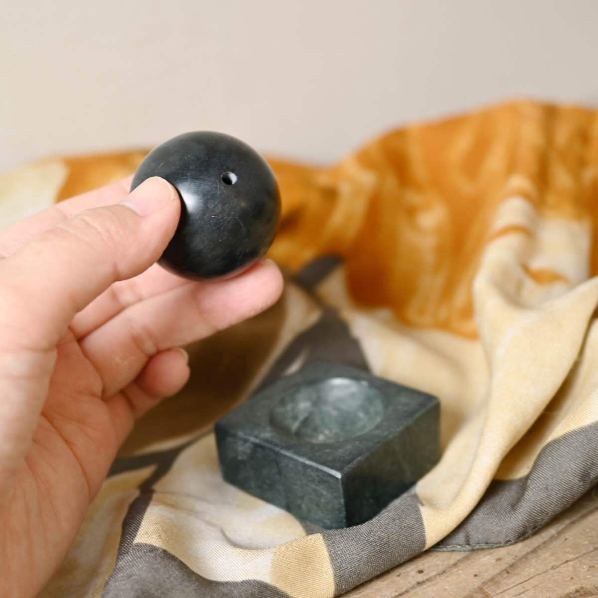 お香を立てる球体の向きを変えることで