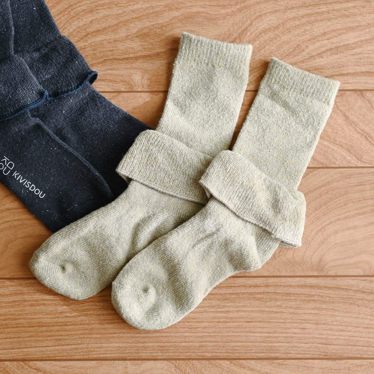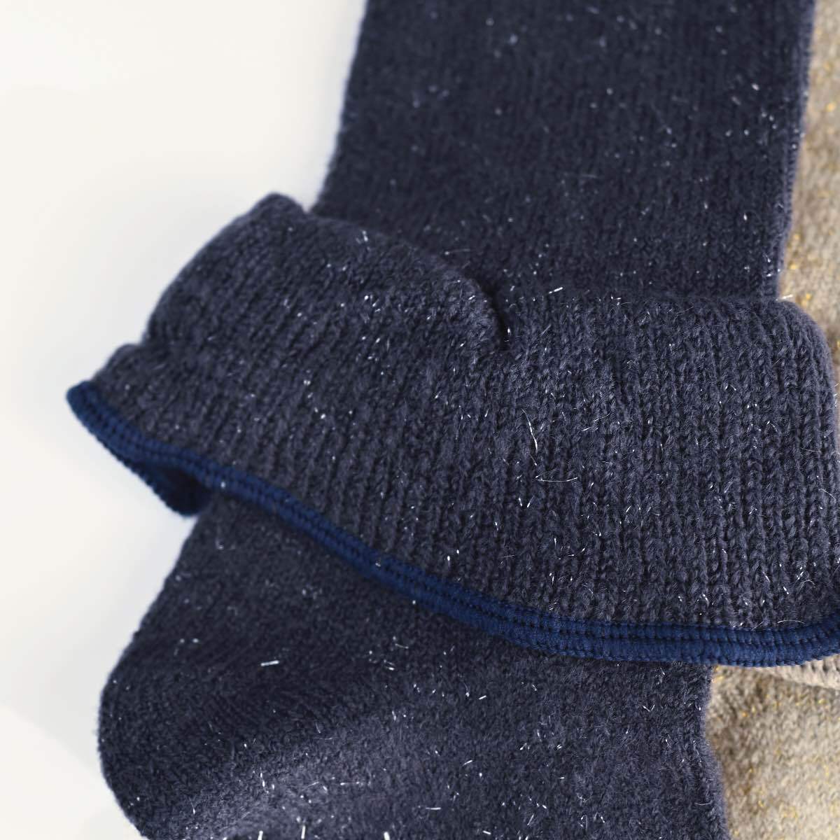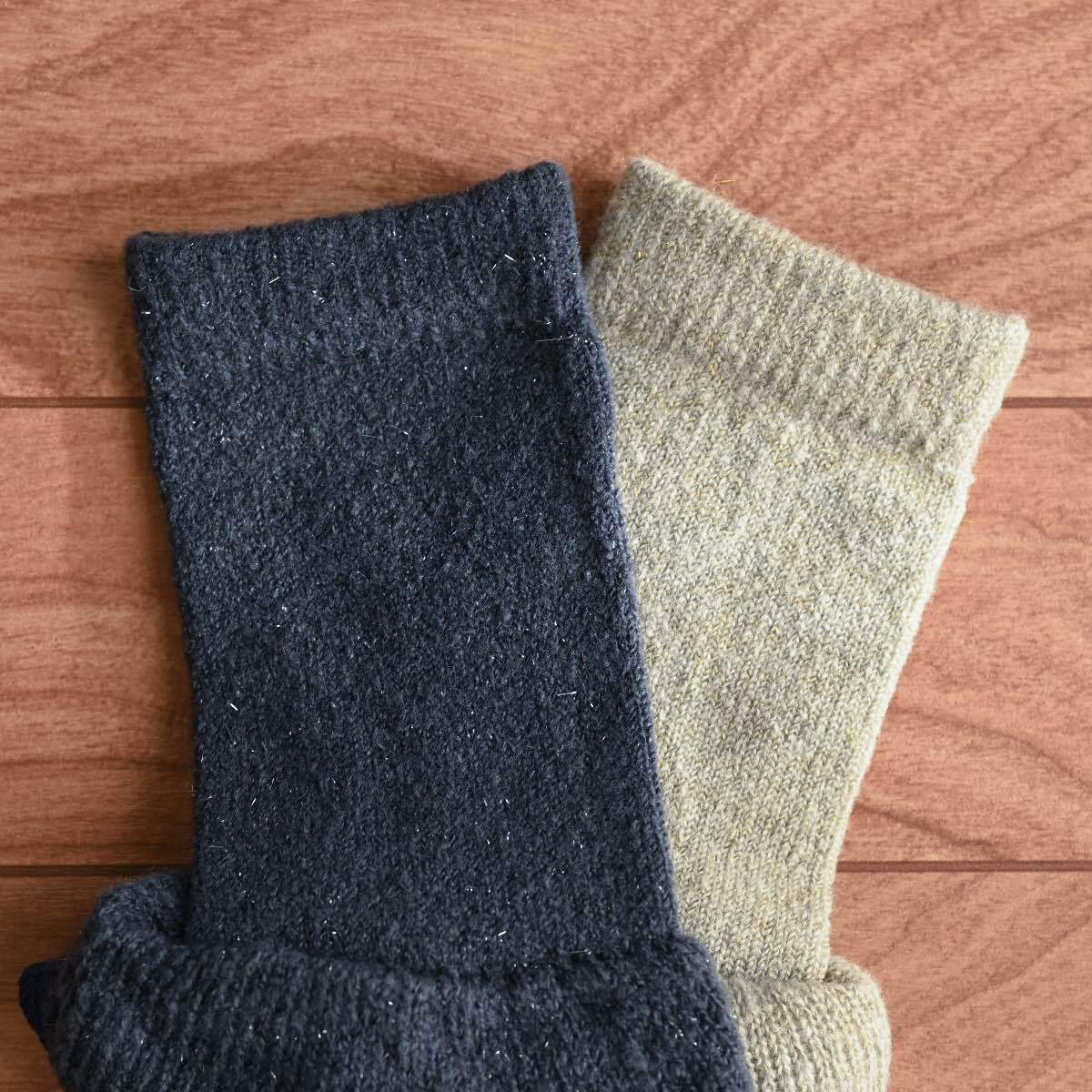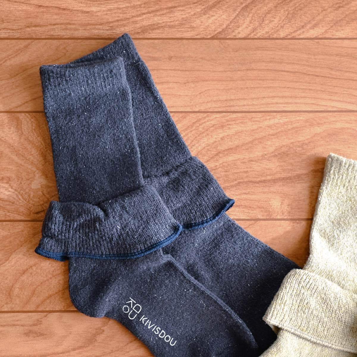 ソフトフリル クルーソックス2足セット|ライトグレー ネイビー KIVISDOU 靴下 ラメ 雑貨店
