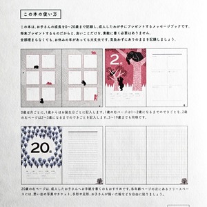 「20年前のあの日、あなたは生まれました」から物語が始まります。クマやリスの赤ちゃんは、森に住んでいる動物や豊かな自然とのふれあいで、どのように成長していくのでしょうか。あなたのお子さんの成長と重ねて、記録していきましょう。