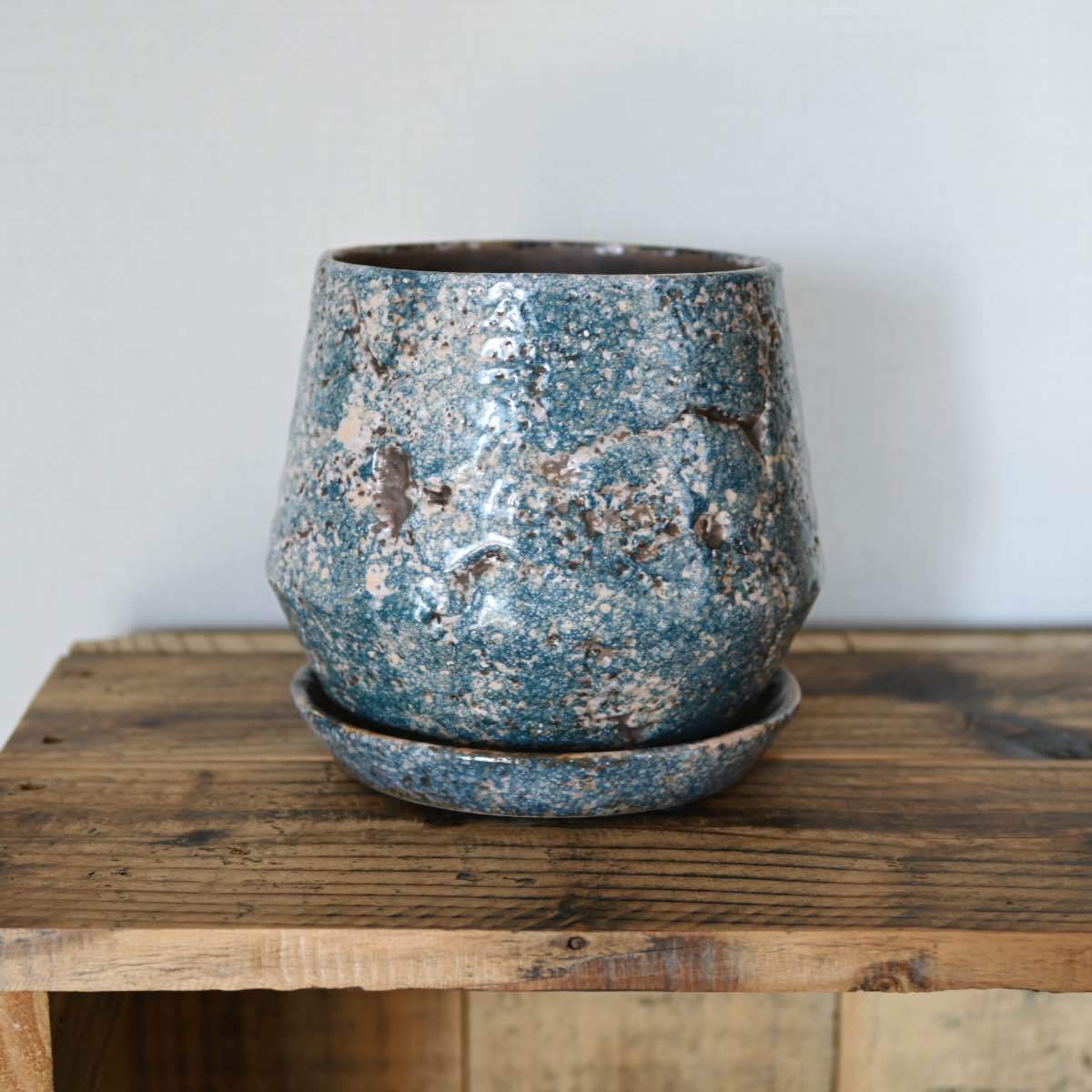 ストーンウォッシュポット|ブルー ガーデン 植木鉢 おしゃれ 青系 雑貨店