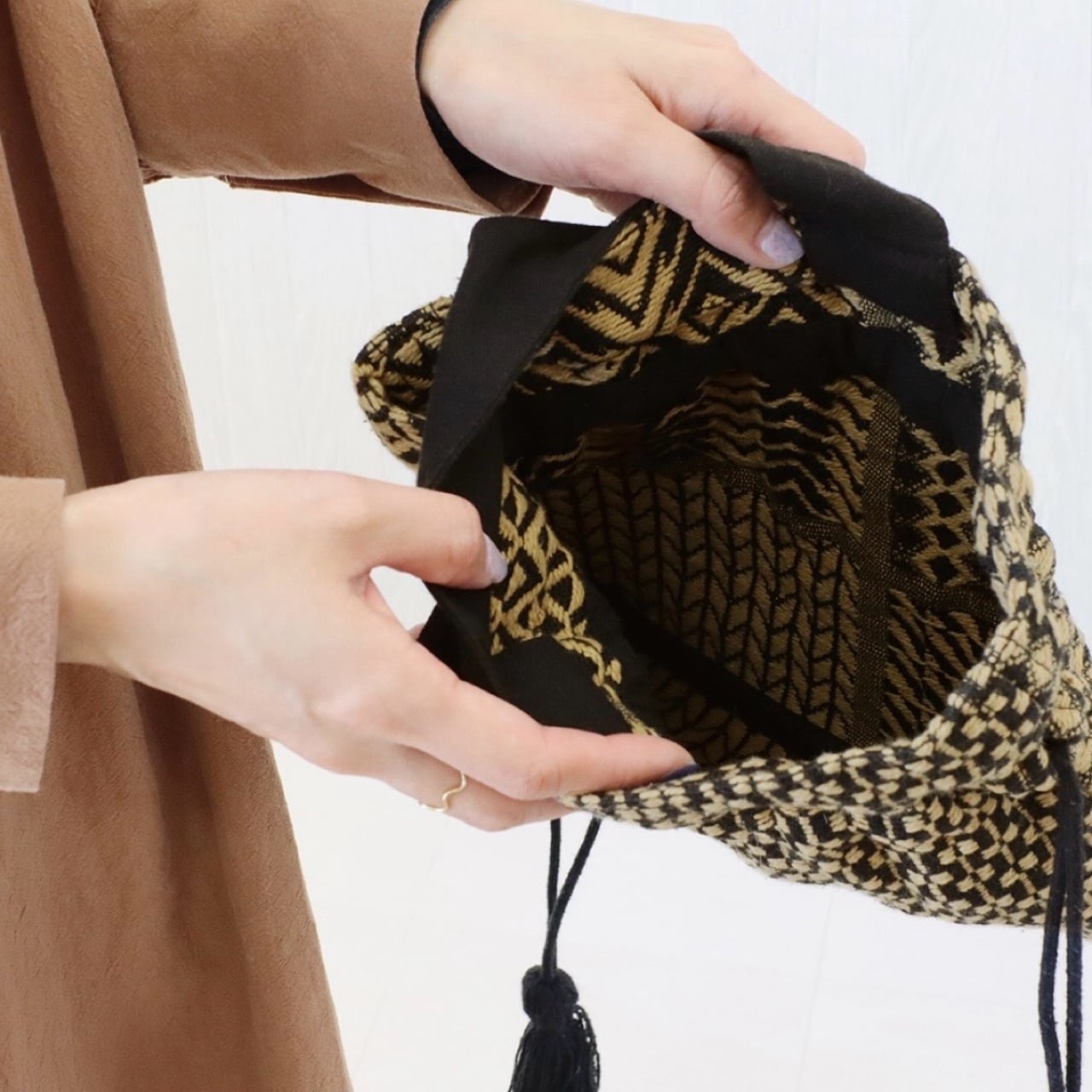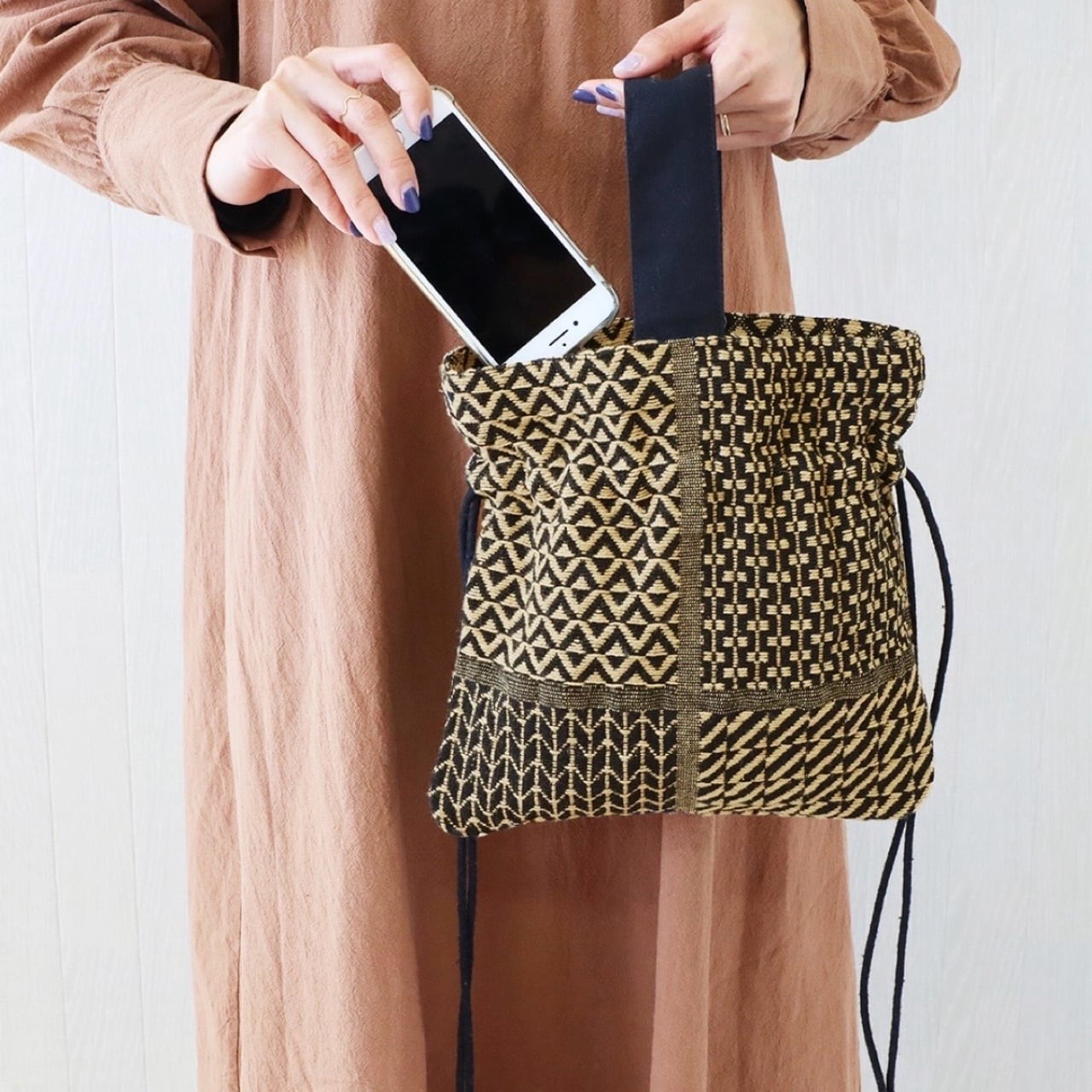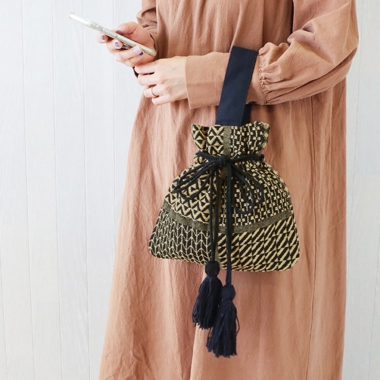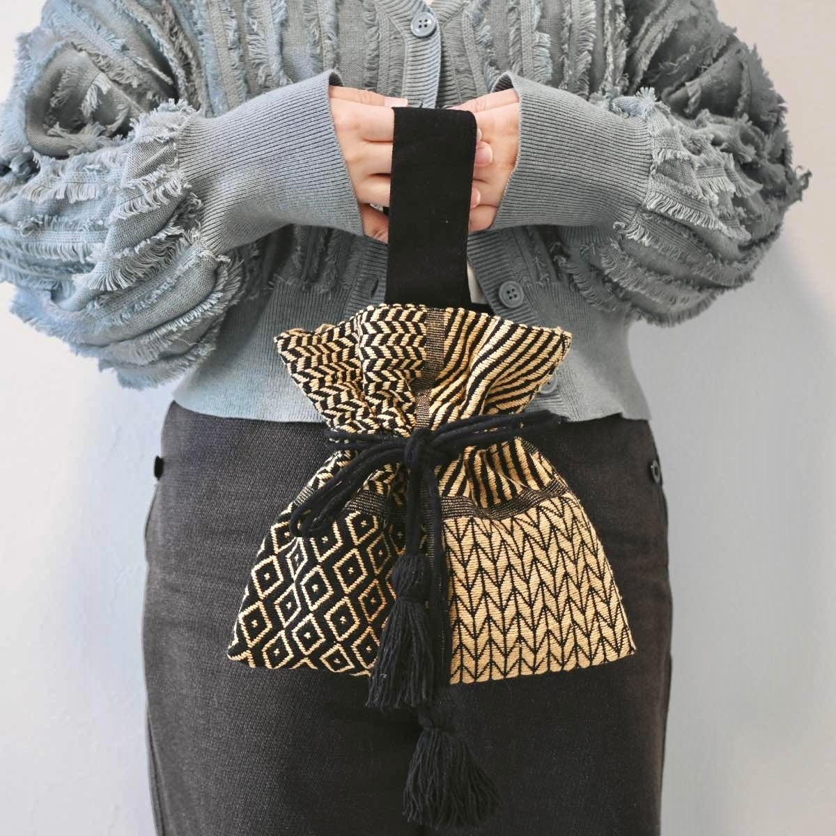 アフリカン ドローストリングバッグ|巾着バッグ おしゃれ モノトーン 雑貨屋