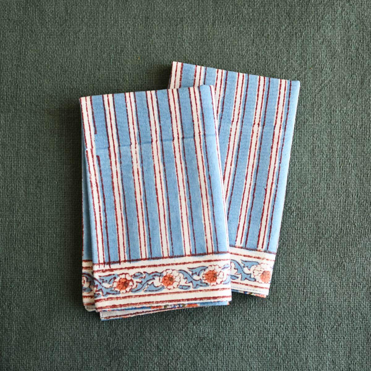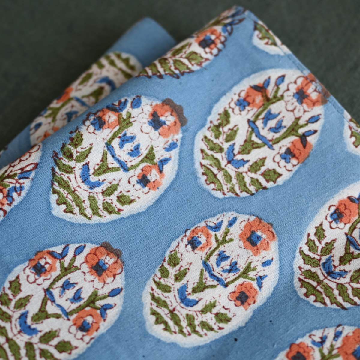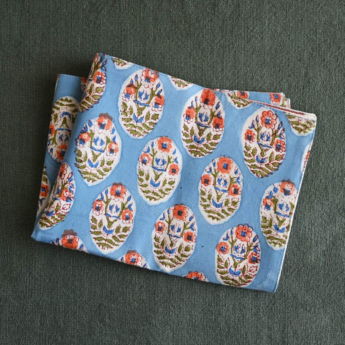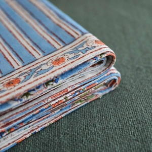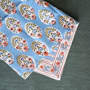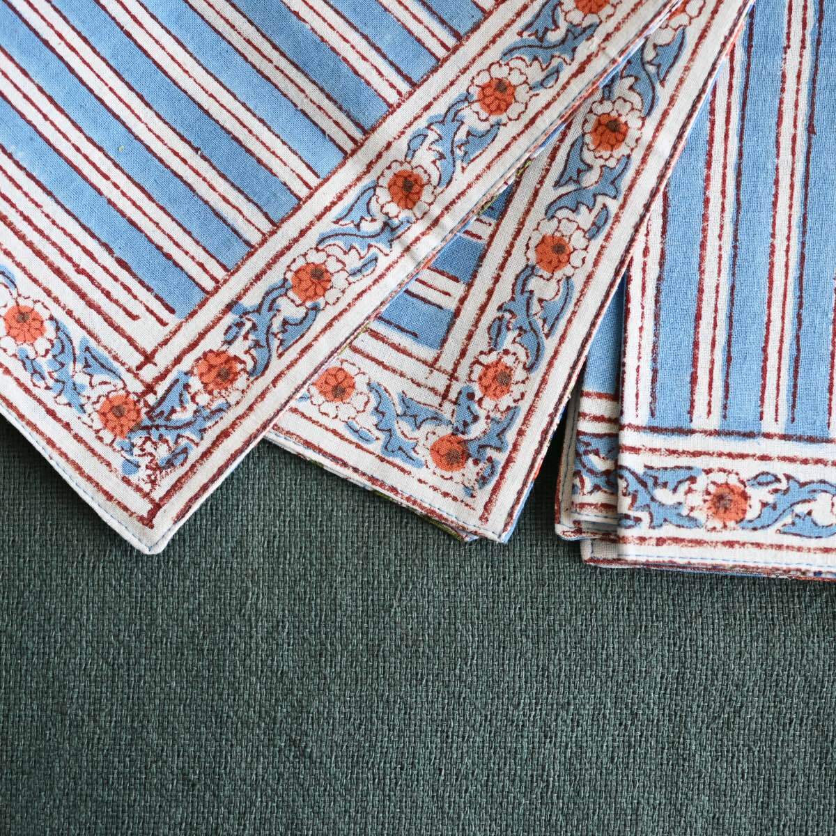Amabile ブロックプリントのランチョンマット│ ブルー 青系 アジアン 民族柄 花柄 かわいい エスニックテイスト