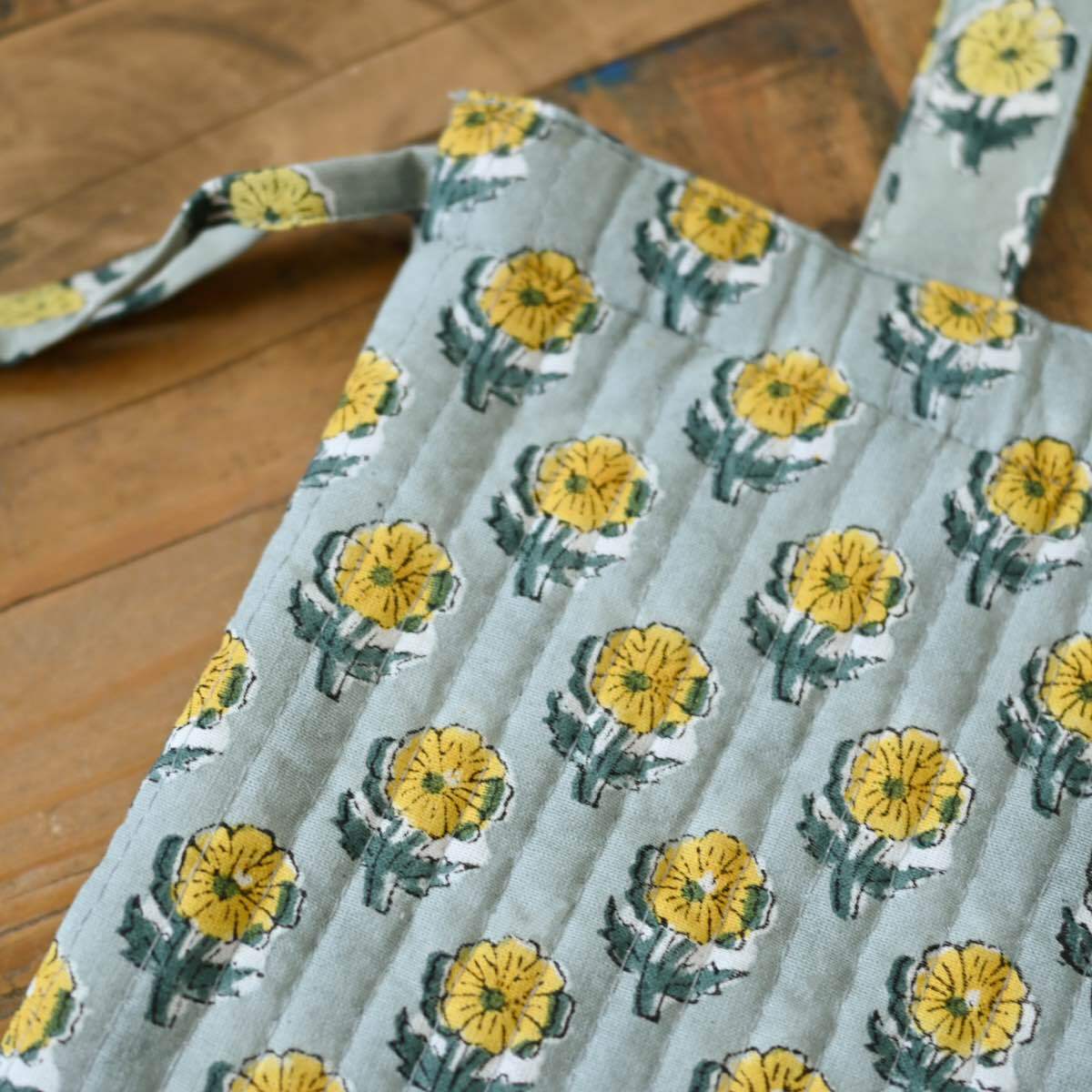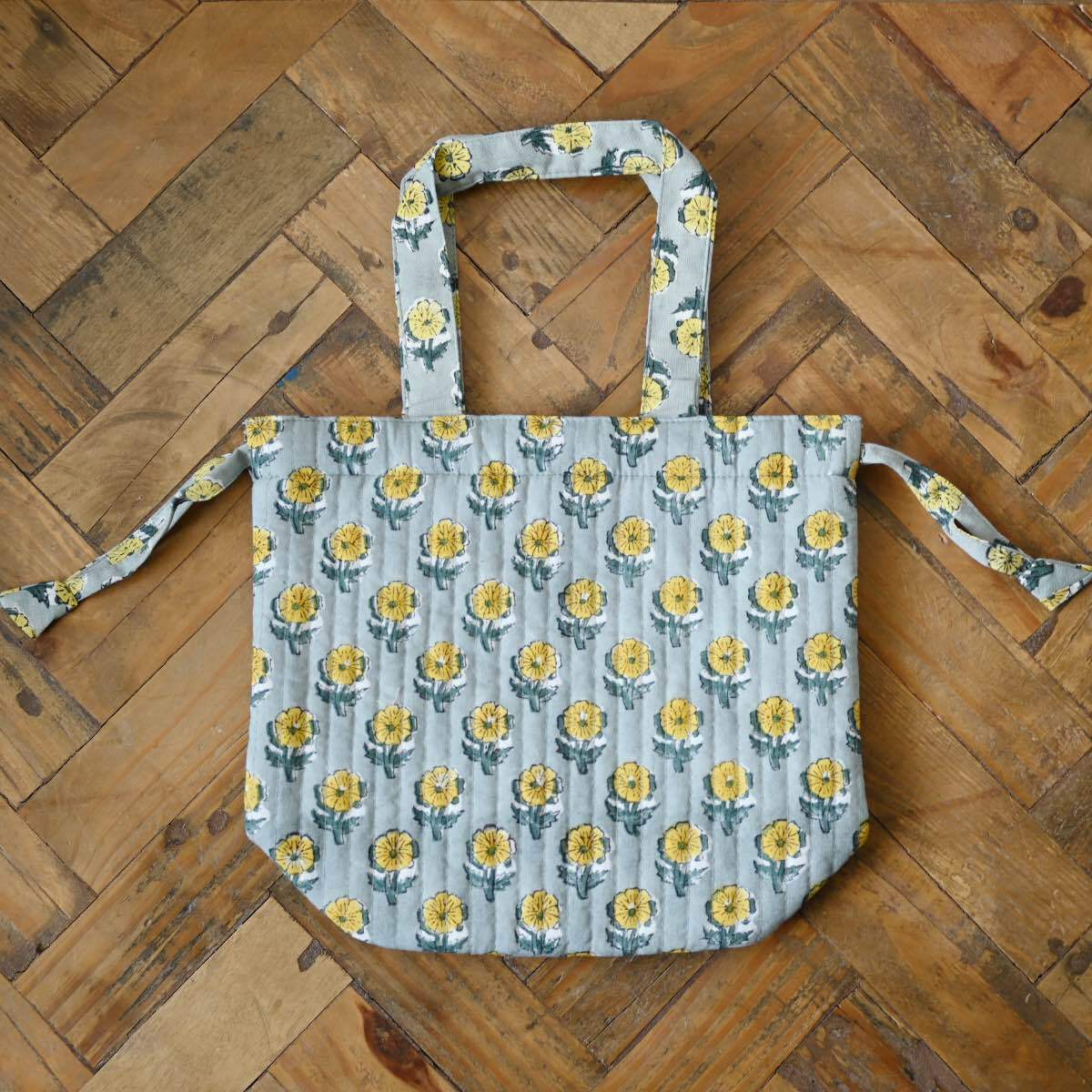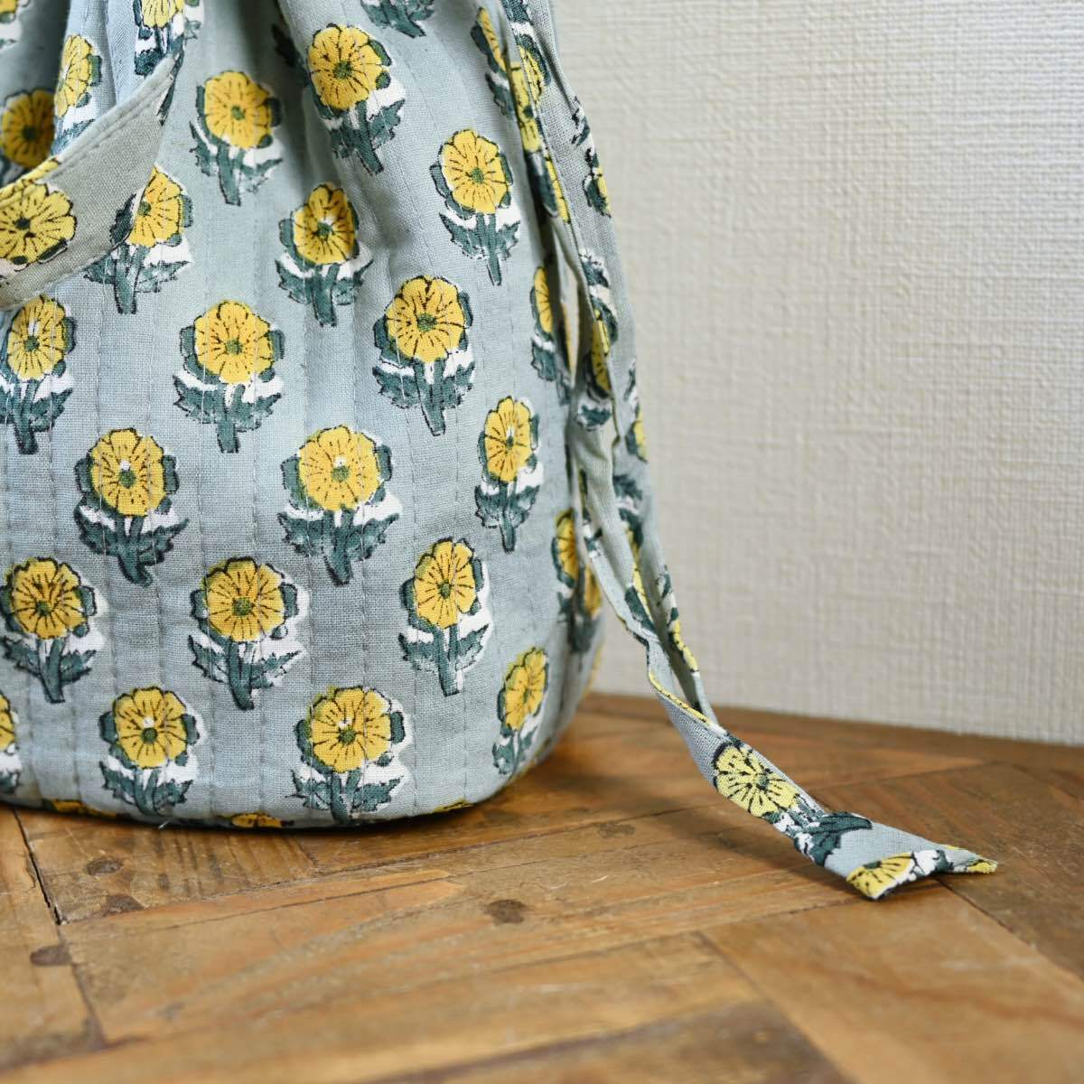 Via India カリーノ ブロックプリント 巾着バッグ(ミント)|ピンク 保冷バッグ 花柄 おしゃれ 雑貨屋