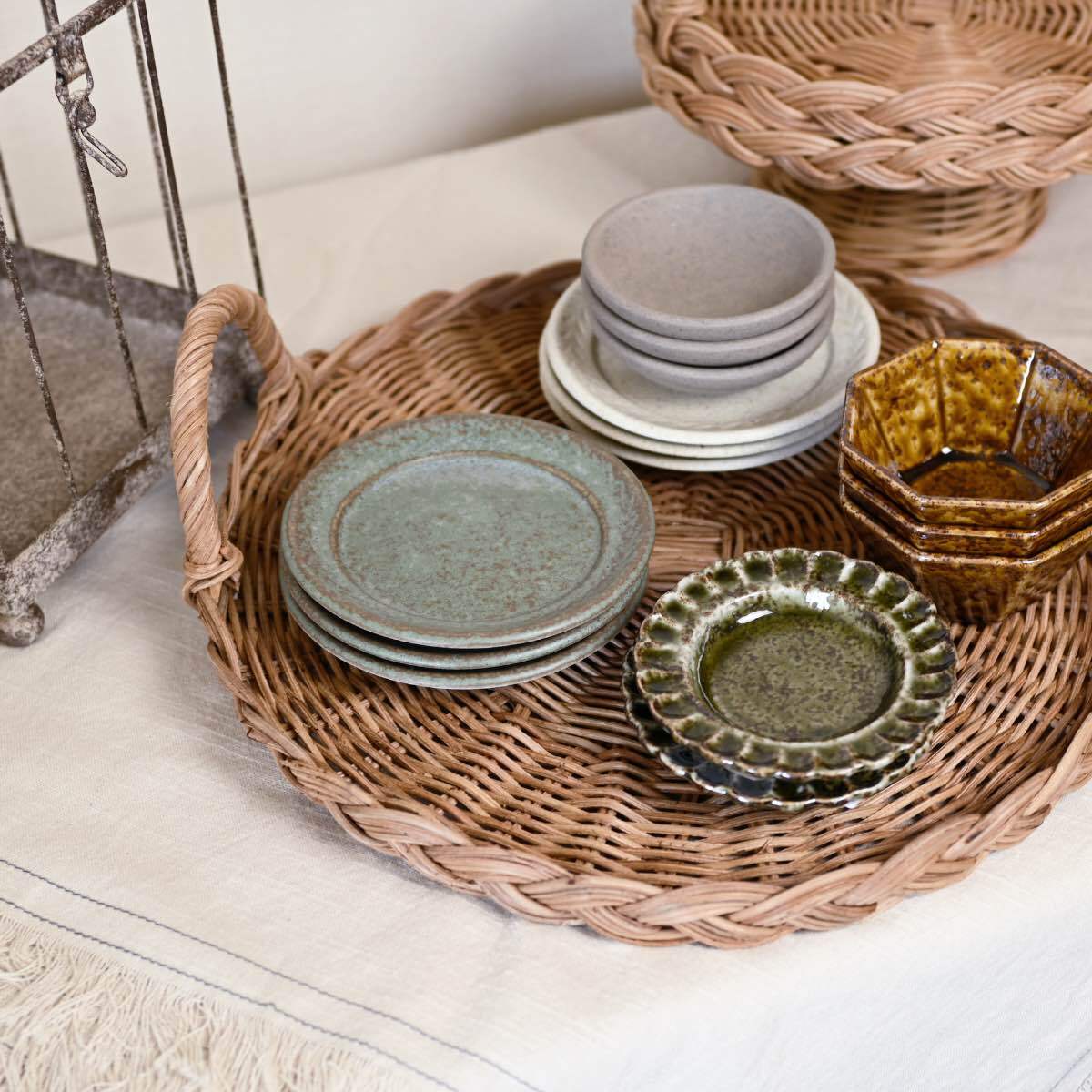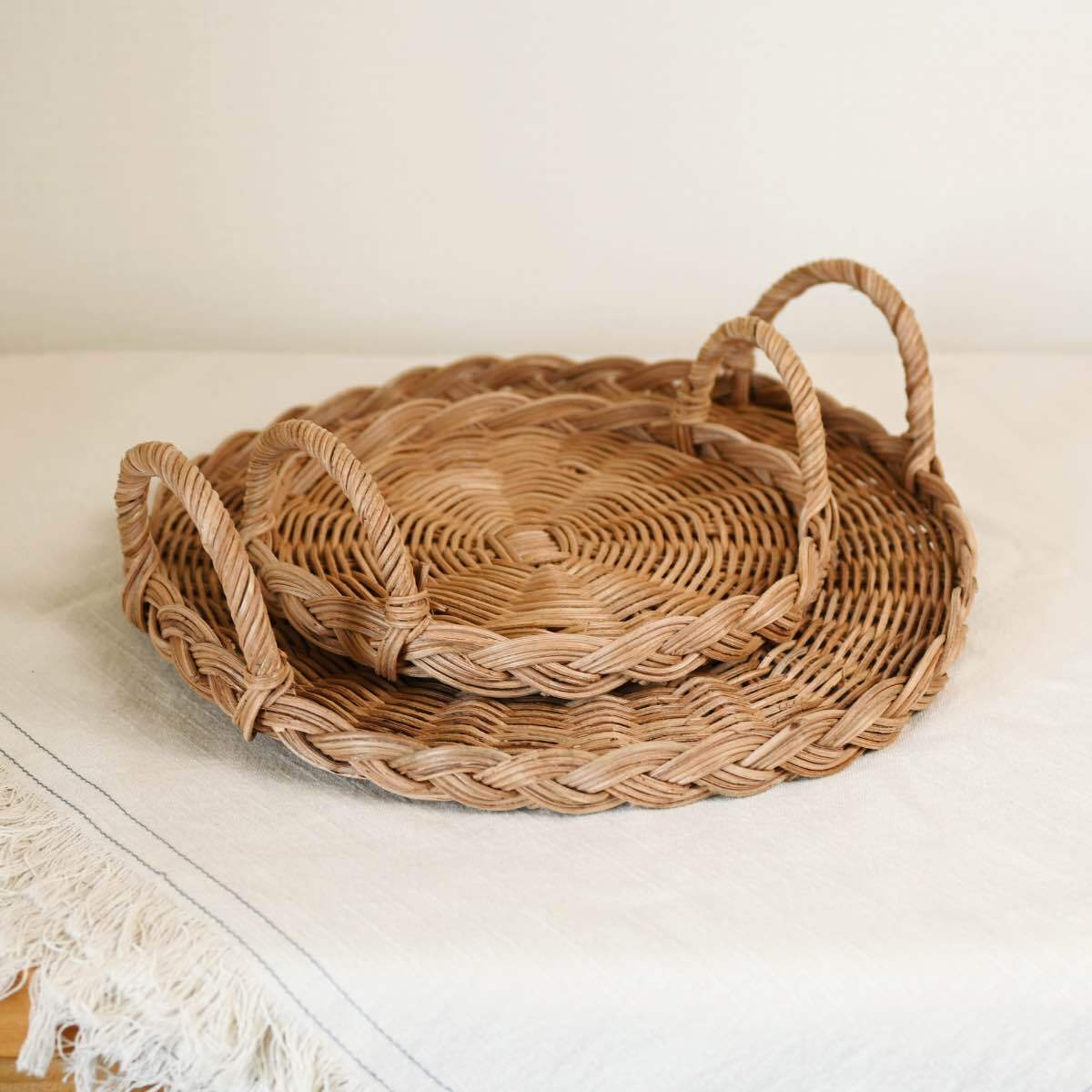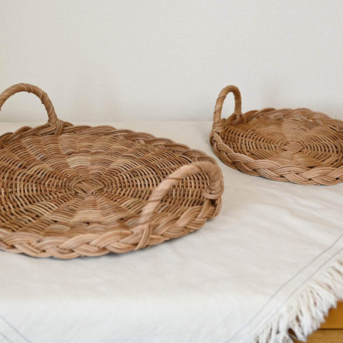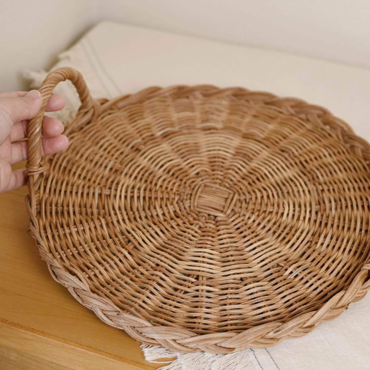 MERRY バスケットラウンドトレイ Mサイズ|丸型 カゴ 飾り台 ナチュラル おしゃれ インテリア 取手付 雑貨屋