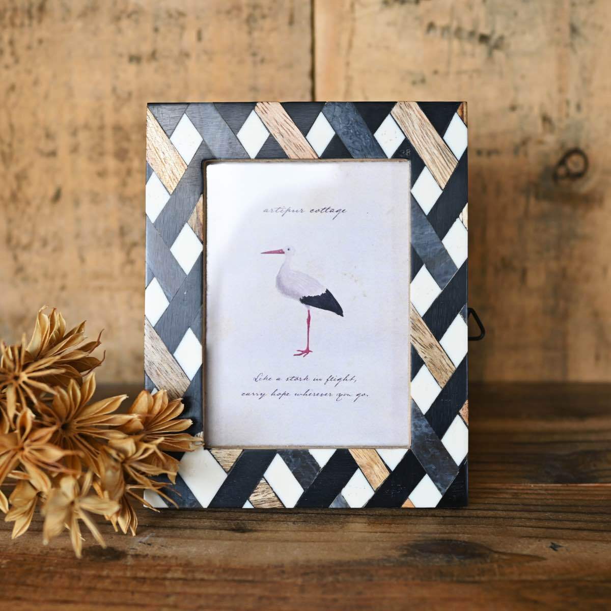 ミニフレーム(コウノトリ)|写真立て おしゃれ クラシカル 金色 アンティーク調 インテリア 雑貨屋