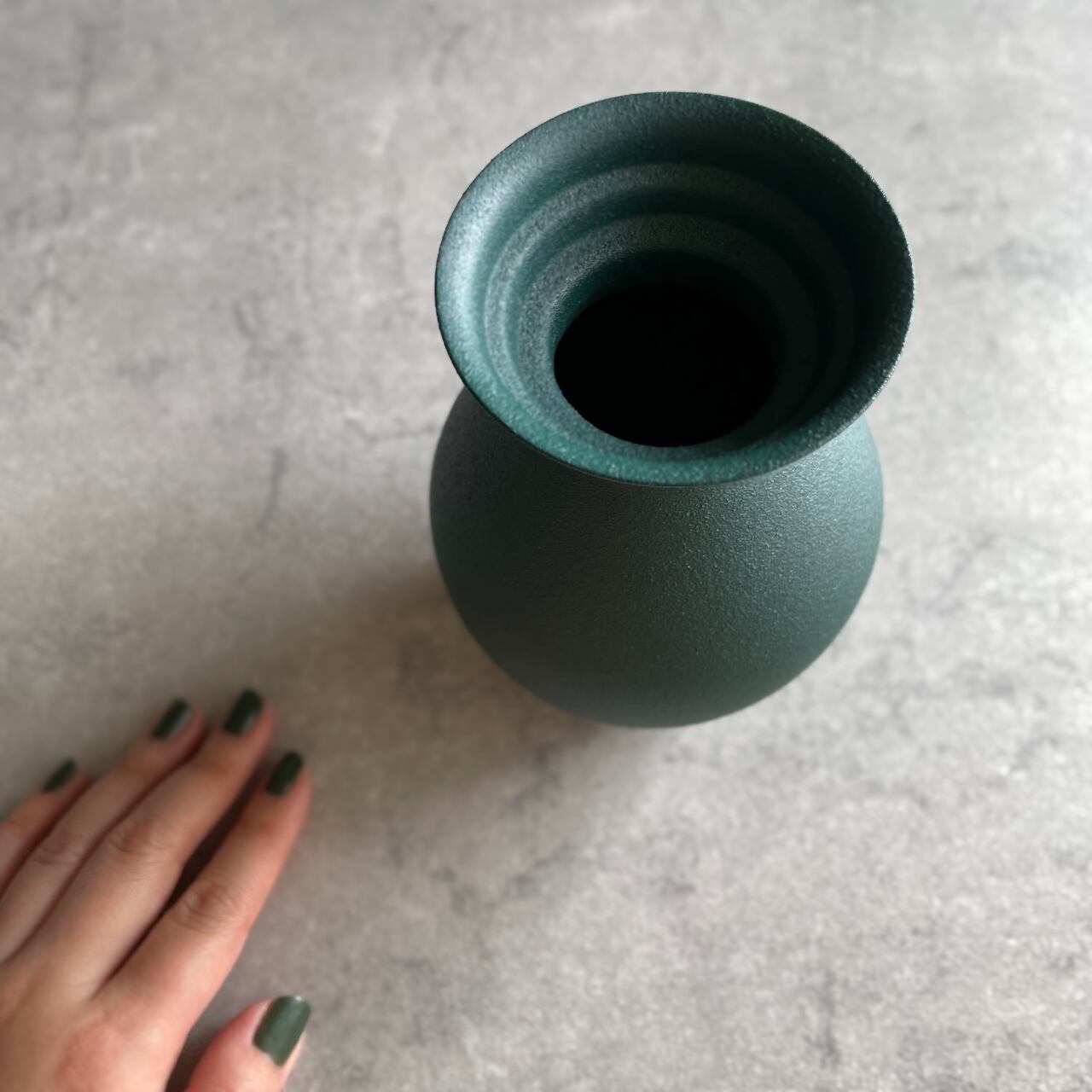 【 完売 】マットなアイアンフラワーベース|ピーコックグリーン レトロ 花瓶