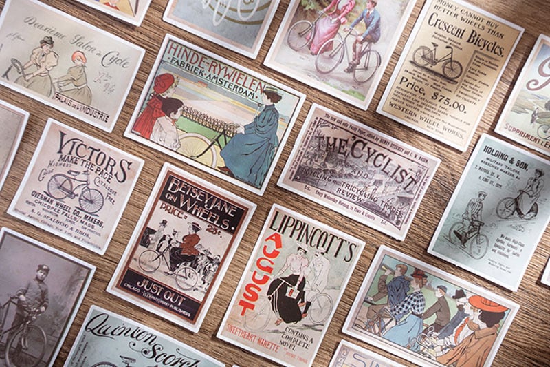 ヴィンテージポスターステッカー サイクリング 20枚セット|アンティークカラー レトロ 手帳素材 大きめシール
