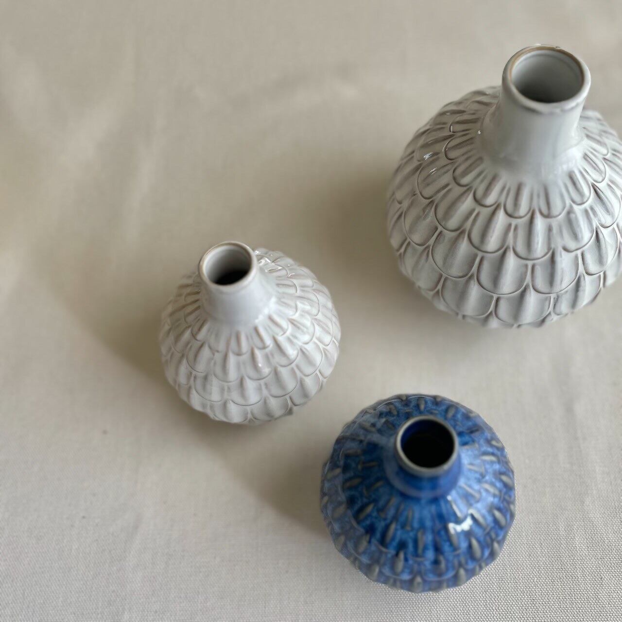 【 再入荷 】Osvaldo First フラワーベース S|レトロ 花瓶 丸型 鳥の羽 ホワイト・ブルー アンティーク調