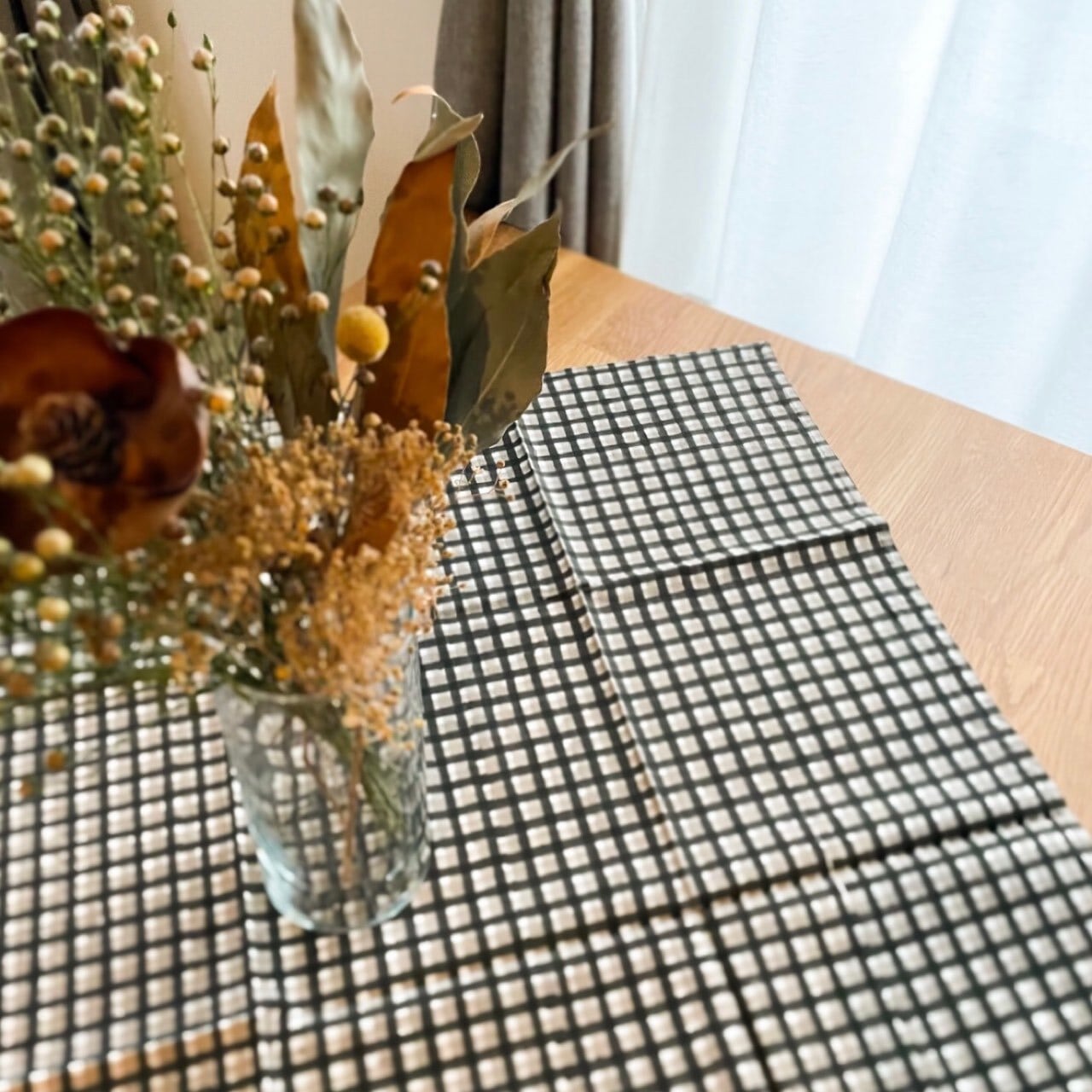 アンプレッシオン テーブルクロス チェック チャコール|3color ブロックプリント ナチュラル ベーシック 自然 エシカル