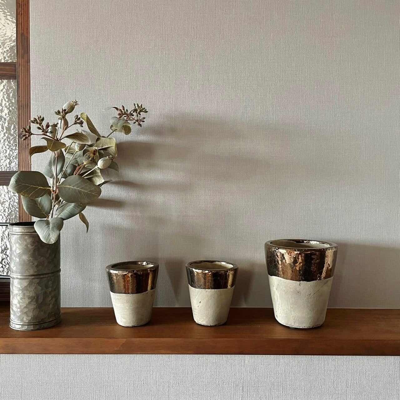 【 完売 】ミノス ラウンドポット Mサイズ|ガーデン 植木鉢 おしゃれ アンティーク調 ゴールド ナチュラル