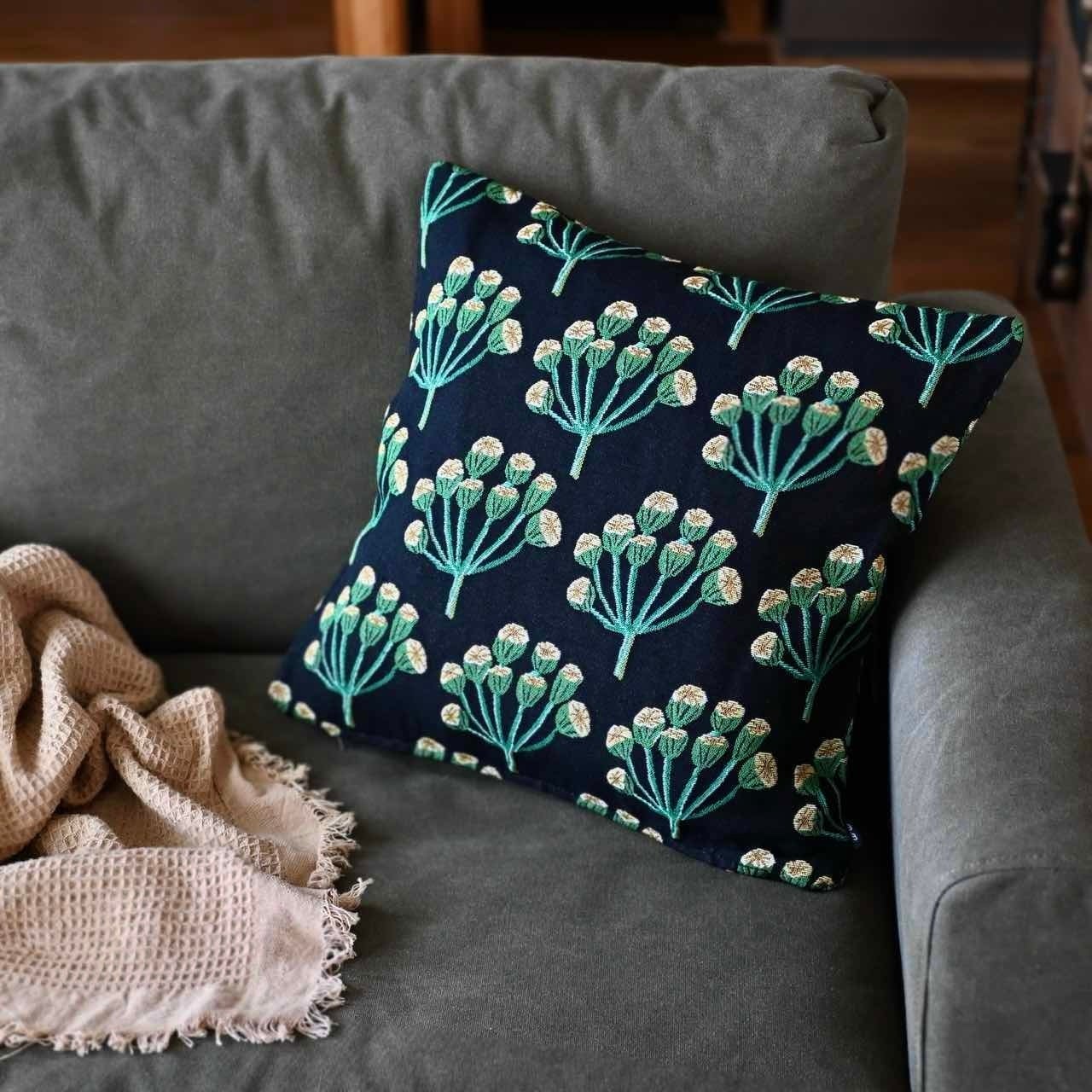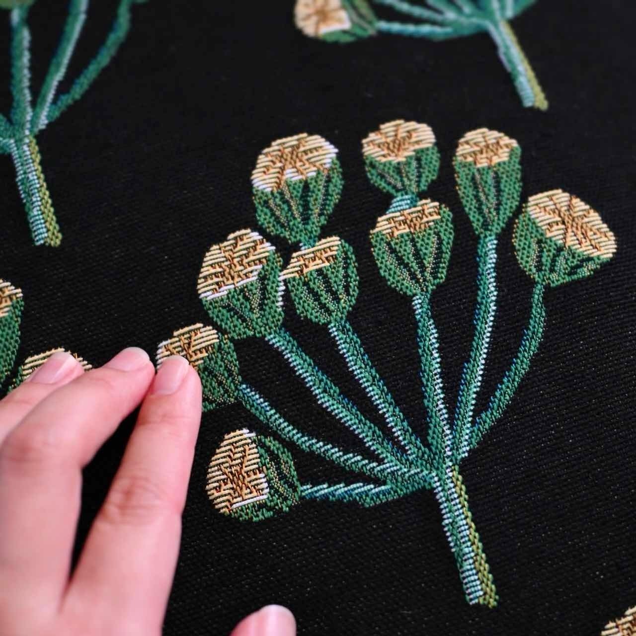 織りのクッションカバー Mimosa|松尾ミユキ 黒 ブラック 花柄 インテリア 雑貨