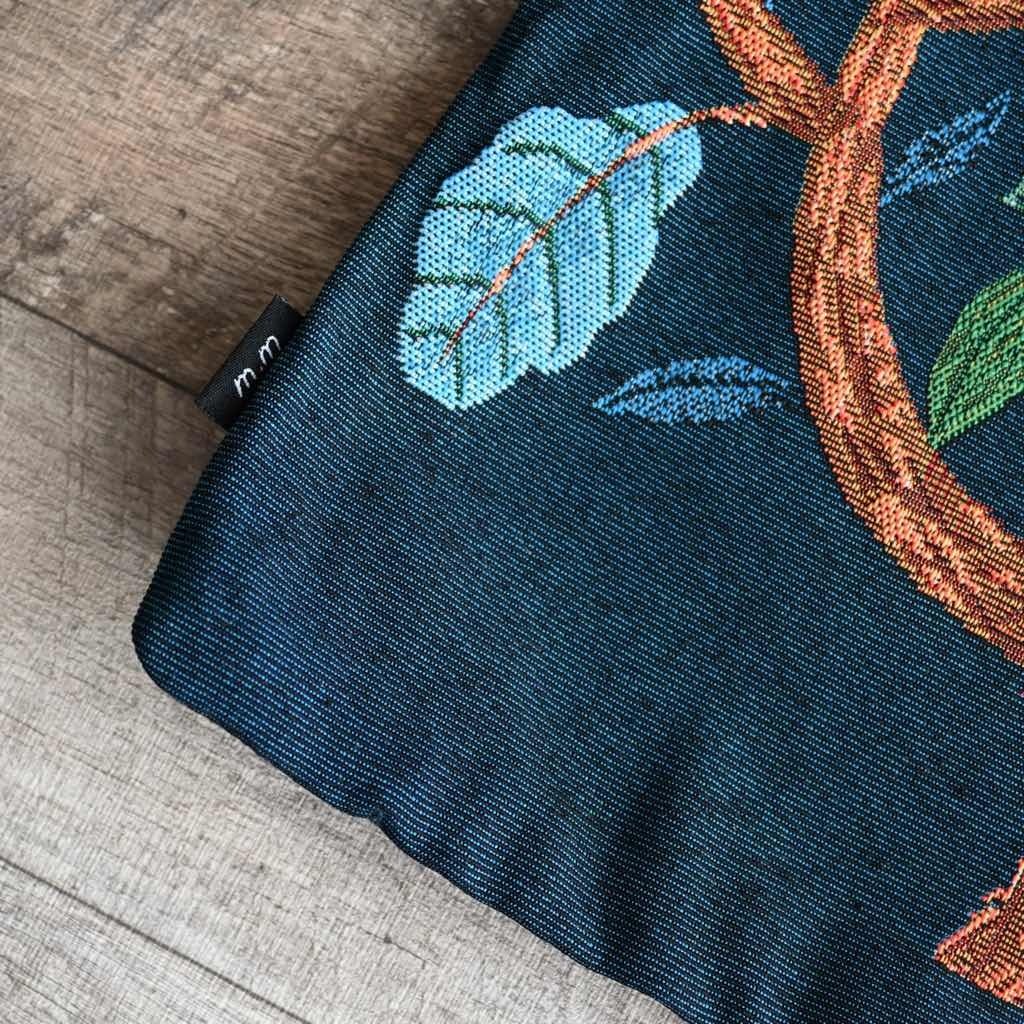 織りのクッションカバー Bird Tree|松尾ミユキ ネイビー 鳥 花柄 インテリア 雑貨